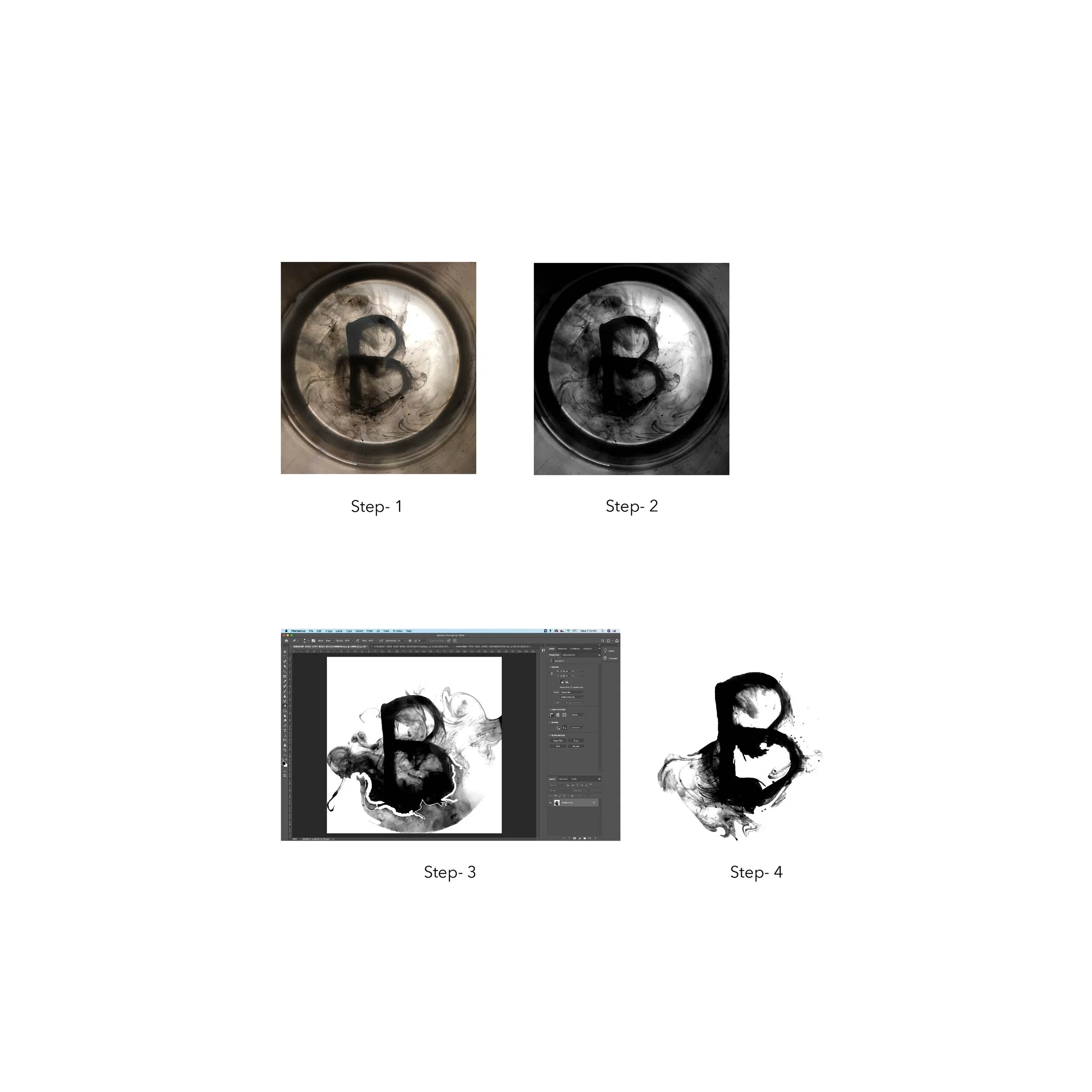 objects. Each letter was created by writing it with a paintbrush at the bottom of a container field with water.